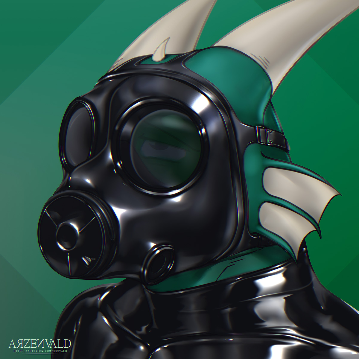 title:commission #1 | kobold in rubber & s10 gasmask