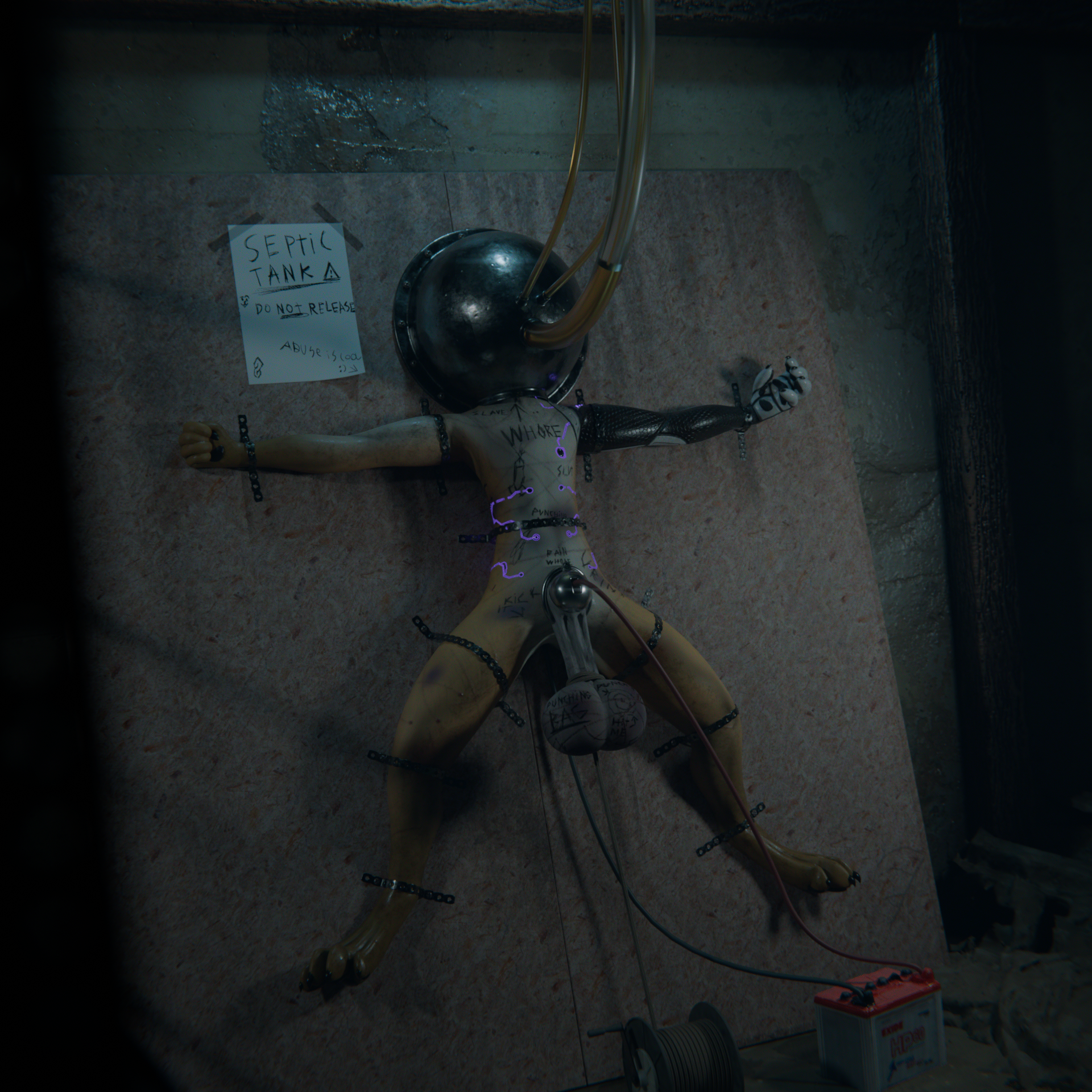this one's been hooked up for around 3 months now. still chugging down piss from the urinals upstairs like a champ!