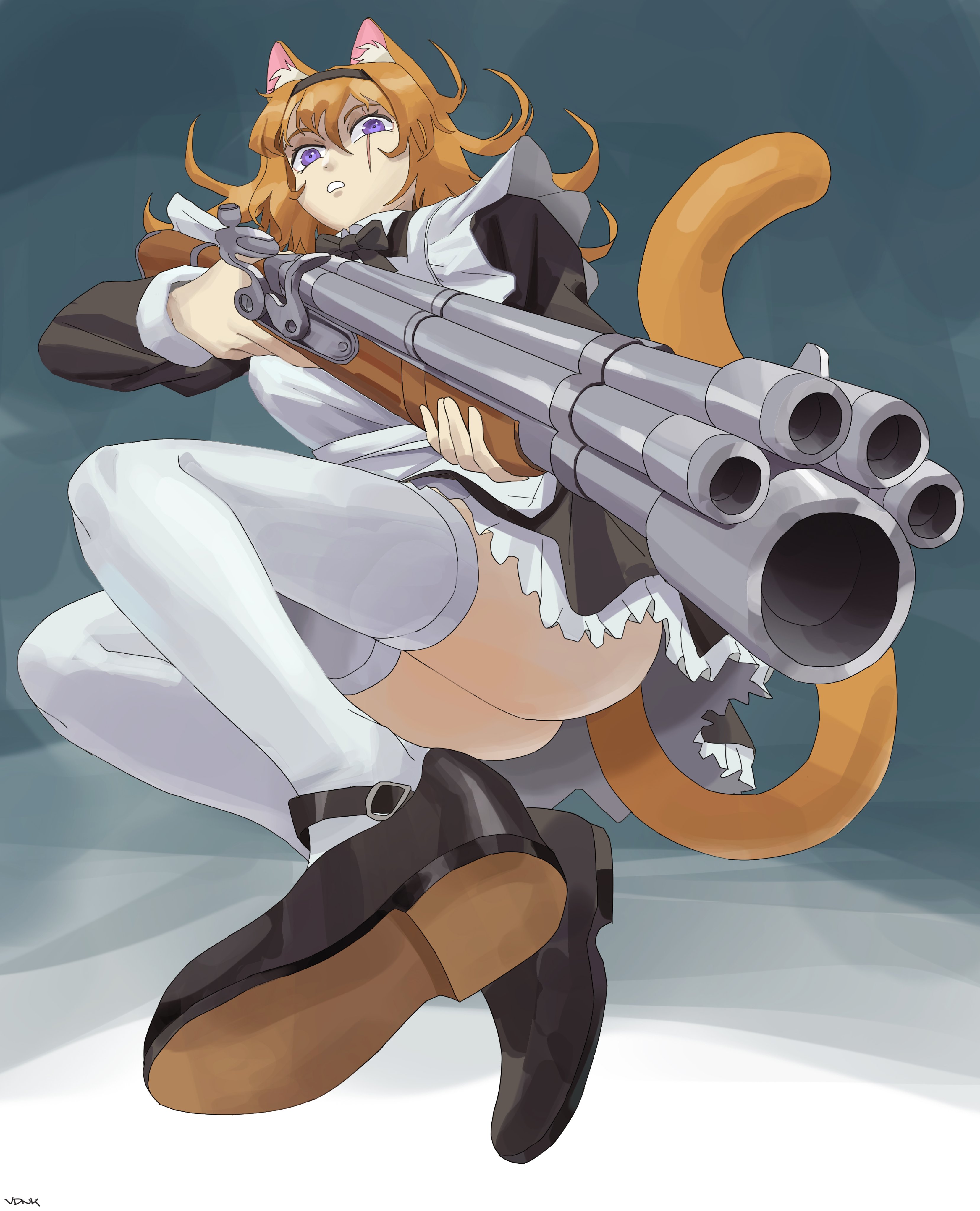 holding shotgun